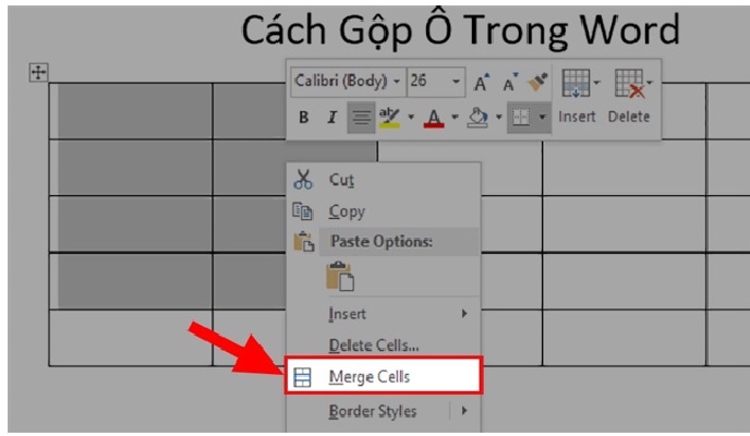 Bước 2: Bạn thực hiện việc nhấn chuột phải. Rồi bạn thực hiện chọn Merge Cells để gộp ô trong Word.