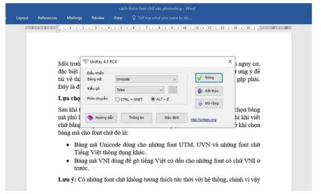 - Thứ 1 là Bảng mã Unicode sẽ được dùng đối với các font chữ UTM và UVN. Hoặc các font chữ tiếng Việt khác.