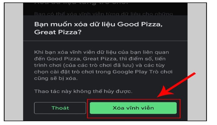 + Bước 3: Bạn hãy bấm vào chọn Xóa vĩnh viễn để xóa đi dữ liệu của một trò chơi mà bạn đã chọn nhé.