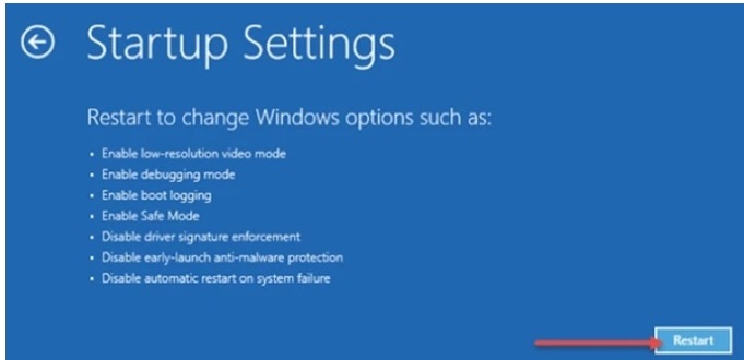 Bước 4: Tiếp đến, bạn có thể tiến hành theo các thao tác tương tự như cách 2 ở trên. Bạn lần lượt tiến hành việc chọn vào mục See more recovery options. Bạn hãy bấm chọn vào mục Startup Settings. Và hãy nhấn vào nút Restart để hoàn tất.