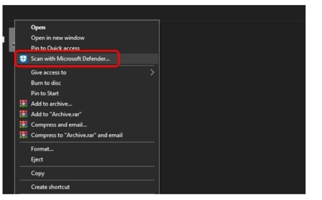 - Bước 3: Bạn thao tác bấm chọn Scan with Microsoft Defender (hay là phần mềm diệt virus bạn đang cài đặt).