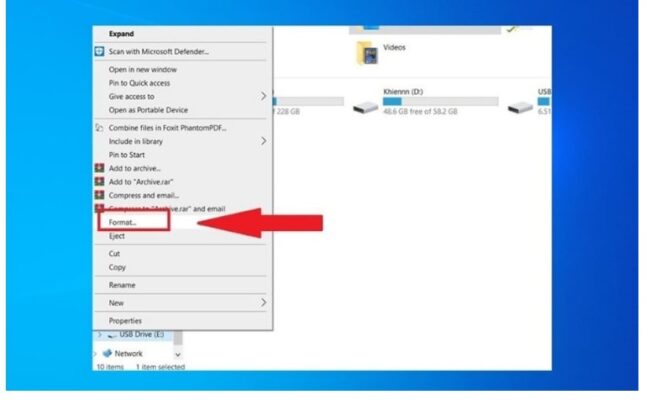 - Bước 2: Bạn bấm chuột phải vào ổ đĩa của thẻ nhớ và bấm chọn vào Format…