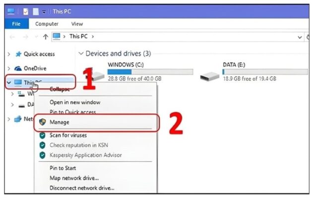 - Bước 2: Bạn bấm chuột phải vào biểu tượng This PC. Bạn thực hiện bấm vào chọn Manage.