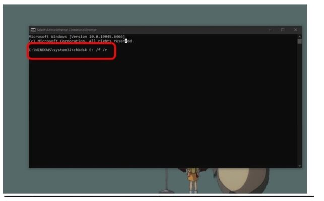 - Bước 3: Ở trong cửa sổ Command Prompt thì bạn hãy nhập lệnh sau. Và hãy nhấn vào Enter: chkdsk E: /f /r